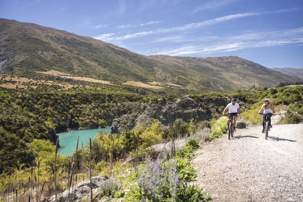 Start your ride on 15 km of scenic trail, following a beautiful section of the Queenstown Trail network. You’ll cross two memorable bridges – the Edgar Swing Bridge and the Kawarau Bungy Bridge – before riding through 9 km of picturesque Gibbston Valley.